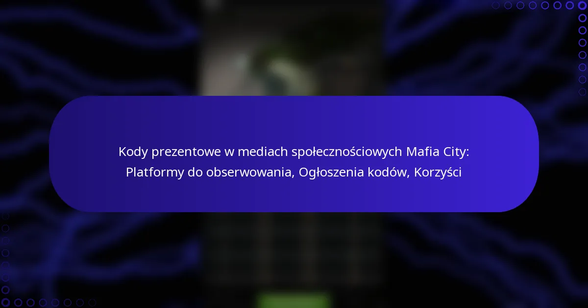 Kody prezentowe w mediach społecznościowych Mafia City: Platformy do obserwowania, Ogłoszenia kodów, Korzyści