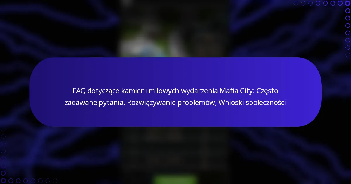 FAQ dotyczące kamieni milowych wydarzenia Mafia City: Często zadawane pytania, Rozwiązywanie problemów, Wnioski społeczności