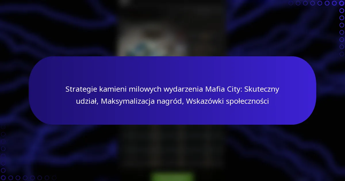 Strategie kamieni milowych wydarzenia Mafia City: Skuteczny udział, Maksymalizacja nagród, Wskazówki społeczności
